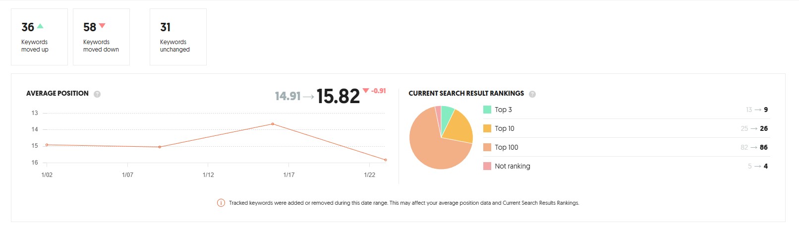 Right now Climate Works is averaging about 15th place across tracked keywords, with roughly 35 keywords already ranking on page 1, which is a strong foundation to build on.