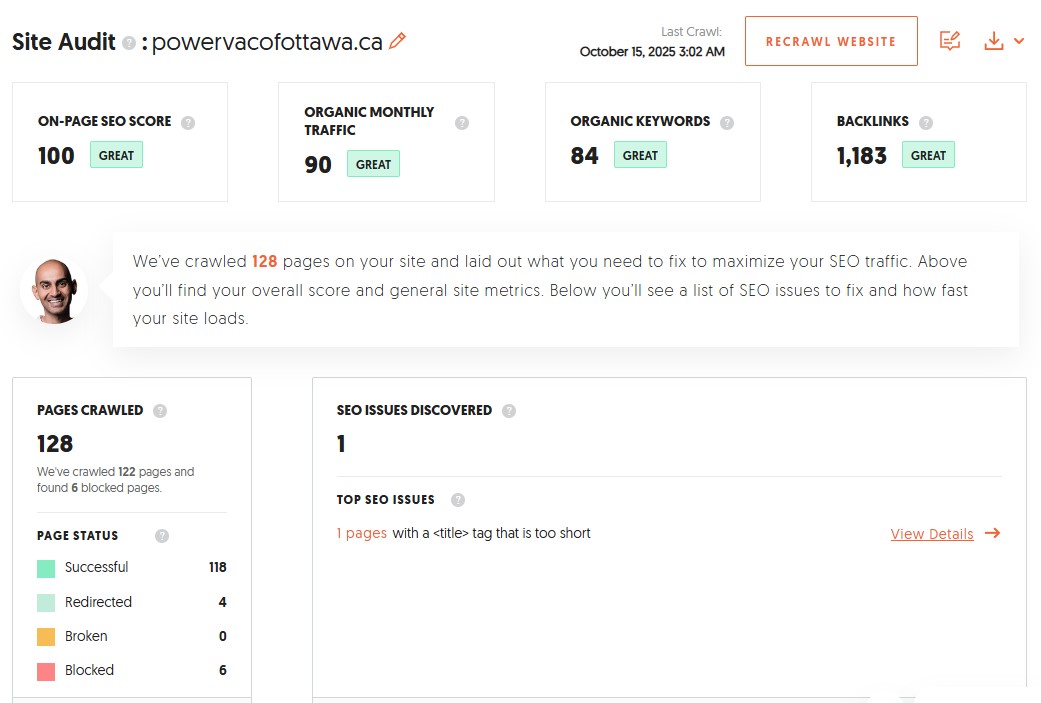 As we move forward, our focus will be on continuing to add useful, relevant, and engaging content that answers real questions homeowners are asking. By consistently publishing high-quality blog posts, refining technical elements, and building out local landing pages, Power Vac of Ottawa is steadily positioning itself as a trusted authority in its field — both for users and for Google.